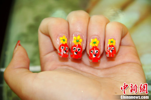 “世园会开幕前后,‘长安花’图案的彩绘指甲最受欢迎。”位于骡马市一家美甲店老板透露,有的顾客专程从网上下载“长安花”照片给他们看,让他们彩绘时按图索骥,有的则干脆量身定制,以求个性化。