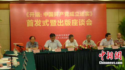 国家新闻出版总署副署长邬书林、中央党史研究室副主任章百家及中央文献研究室、中宣部出版局、中央党校、北京师范大学的专家学者和人民日报海外版副总编辑钱江、中国新闻社副总编辑夏春平、凤凰出版传媒集团董事长谭跃等史学界和新闻出版界代表出席今天的《开端——中国共产党成立述实》首发式暨出版座谈会。