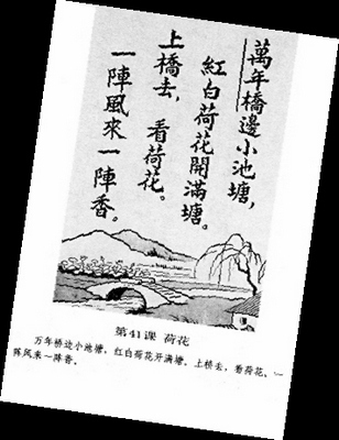 《共和国教科书》的初小部分——《新国文》的第一册第一课,插图上只有一个字:人。立人方立国的“人”。