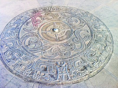 记者从规划部门了解到,“城市原点”浮雕直径1.8米,材质为青铜铸造,周边以花岗岩铺砌而成。浮雕中心以磁山文化的附加弧线纹为主向外延伸,周围吸取战国时期青铜器阴龙纹、和氏璧造型,中间指南针与汉代瓦当图案相结合,东西南北文字运用篆书,经纬度、高程文字运用隶书,组成丰富的艺术形式,整体浮雕体现了邯郸历史、当今、未来的发展。