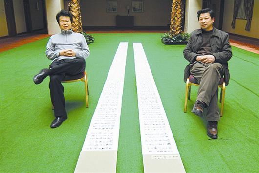 图为:柳忠秧(左)歌行体史诗《楚歌》获好评(资料图)