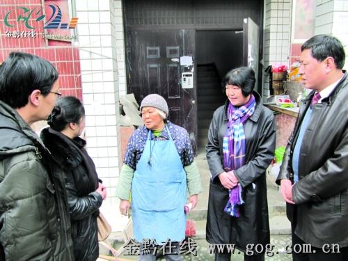 姚晓英(右二)与安顺市中院有关领导到西秀东街办居民小区看望受害人家属吕素英(中)。