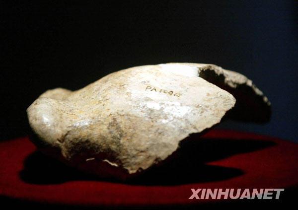 1929年12月2日,中国著名古人类学家、史前考古学家和地质古生物学家裴文中带领考古发掘人员在北京周口店发掘出北京猿人第一个完整的头盖骨。该发现确立了猿人阶段的存在,证实了达尔文关于人类起源于古猿的理论。这是“北京人”头盖骨(额骨)化石真品(资料照片)。新华社发