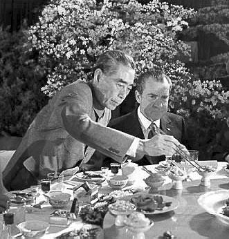 那道“干菜蒸肉”,便是绍兴地区传统的大众菜肴,别具一格:干菜乌黑,鲜嫩清香,略带甜味;猪肉红亮,肉糯汁黏,咸鲜甘美。周恩来喜欢吃这道菜,还经常向别人推荐。他在招待客人时,经常点这道菜。有一次,他在上海锦江饭店宴请上海文艺界的袁雪芬、周信芳等知名人士,点的便是“干菜蒸肉”。他还曾用“干菜蒸肉”宴请美国总统尼克松。