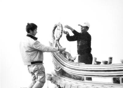 以前,修复庙宇、祖祠上的剪瓷雕,需要“飞檐走壁”(资料图片)