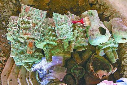 发掘出土的编钟和石磬等陪葬品□本报记者 张彤 发自沂水