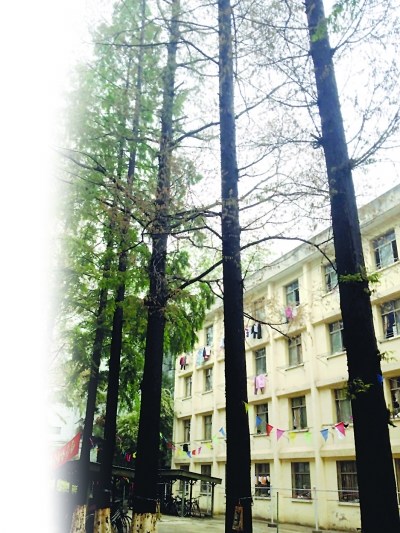 赵薇剧组致南航50年水杉枯黄 13棵树集体打吊瓶(5)