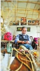 5月10日,凤凰县彩扎传习所,聂方俊和他制作的小狮子头。