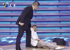 在被指出他的硕士学历不过是个专科文凭时,现场最惊人的一幕发生了,郭杰突然瘫倒在张绍刚旁,张绍刚第一反应“你是在表演吗”,郭杰边说“不是”边晕倒在地。当他休息几秒钟后立刻从地上弹起来,老板们全体灭灯,表示对这名求职者的不满。