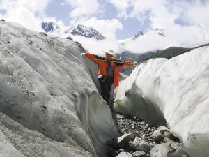 王欣在海拔5400米的地方测量冰裂隙宽度。资料图片