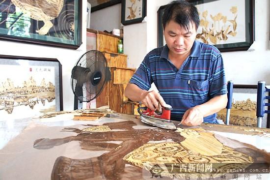 广西一下岗工人自创稻杆画 将“稻草变金条”