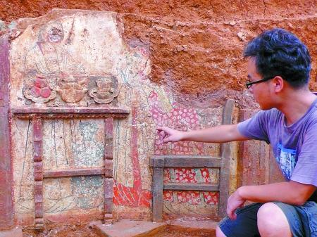 墓中的壁画和砖雕结合得十分完美 见习记者 段伟朵 摄