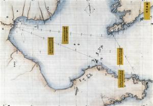 在第二图《阅师纪程》上,详注了李鸿章此次阅操的航线与航程:大沽口至旅顺,一百七十海里;旅顺至威海,九十一海里;威海至烟台,四十四海里;烟台至大沽,一百九十一海里。在第三幅《之罘形势》和第四幅《威海水道》上,还细绘了海岸线与水深,岸上高山用等高线进行描绘。应当说,此时大清绘制海图的水平有所提高,图上绘有指北针,实线描绘航线。