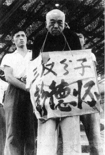 批斗会上,彭德怀和张闻天的脖子上挂着一个又大又重的牌子,上面用黑体字写的名字全部被划上“×”,他们低头弯腰,任凭批斗者捏造罪名,而且不能申辩。批斗会结束后,他和张闻天等人又被强制从人群中两人相对、平举双手筑成的狭巷中低头穿过,遭受显示人们义愤的各种方式的折磨,有人朝他们拳打脚踢,有人向他们吐痰,使他们满头满脸青包紫块和唾液口水长时间折磨使他们走不到一半就瘫倒了,嘴里渴,要求喝水。