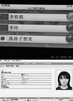 证件显示获季军日本选手姓“我孙子”