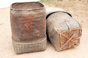 ↓寻淮洲曾作书箱使用的竹篾篓。