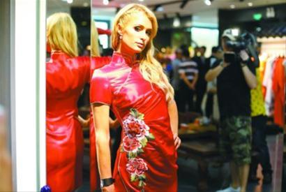 希尔顿对中国传统文化兴趣浓 穿特制旗袍(图)