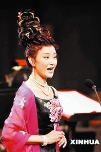 图为:著名歌唱家宋祖英在美国肯尼迪艺术中心唱响《龙船调》