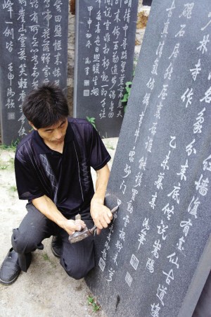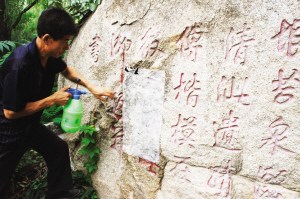 “这是个细致活,不能着急不能怕费时间。这些石刻年头太久了,经过长时间的风霜雨雪的作用,碰的时候一定要小心,一不注意就会破坏掉。”石城认真地对记者说道。