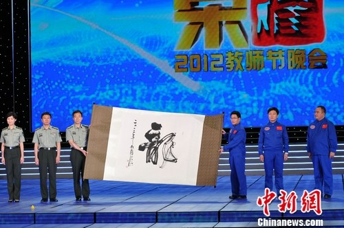 今年科技领域取得了骄人的成绩:神舟九号载人飞船成功实现与天宫一号的手动交会对接,“蛟龙号”载人潜航器突破7062米的深潜新纪录,二者实现了太空与深海的“海天对话”。完成这一任务的航天员景海鹏、刘旺、刘洋和潜航员叶聪、刘开周、杨波将首次同台亮相,为全国人民教师献上神秘大礼。