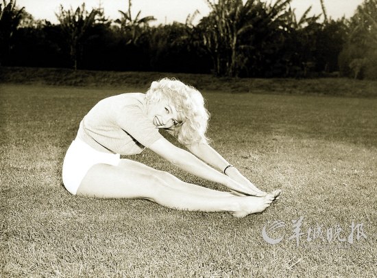 梦露的健乳及保持身材之道:举杠铃做倒立(组图)(4)