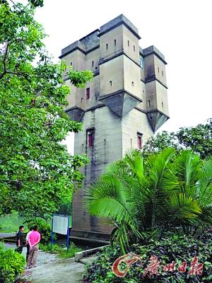 增城奇特碉楼长了一张捆绑式火箭脸!记者昨天在增城市采访获悉,在该市新塘镇瓜岭村东南角的河涌边,有一栋4层高的碉楼。这座21米高的钢筋水泥结构的碉楼居然建在一片四方形的水洼之中,仅在西侧通过一条铁吊桥与陆地相连。据悉,增城瓜岭村这座被称为“宁远楼”的水碉楼,是目前全省发现的唯一建在水上的碉楼建筑,早在2002年就已被确立为广州市级文物保护单位,其魅力足可与开平旱碉楼媲美。