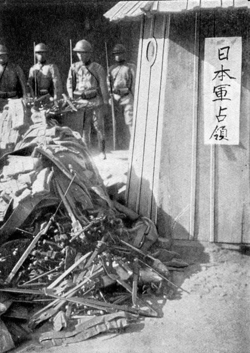 1931年9月19日凌晨,日军炮火轰击北大营三小时后,有准备的日军步兵冲进北大营。日军左胳膊以白布条为记号。