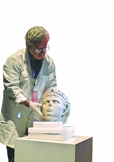 《奥古斯都》头像雕塑精美大气,鼻子下原有的缺损更让人感到它无比珍贵。记者高宝燕 摄