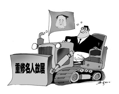 故乡的领导们对于自家土地上飞出的金凤凰,欣喜若狂之余,决定重修旧居。据说政府早有此意,却遭到莫言和家人的反对。但这次莫言的反对还能有多大的效用,我们就得存疑了。君不见,按当地领导的思路,一般得了世界级奖的,比如获得奥运奖牌的,尤其是冠军得主,国家给奖,省市也得跟着给,一路奖下来。如果后续没跟上,说明工作没到位,应该算失误。我猜测,莫言得奖当地反应马上修葺故居也是这个思路。没想到这次却跟得太紧,网上反对声一片,又错了,他们也许还疑惑:错在哪里呢?