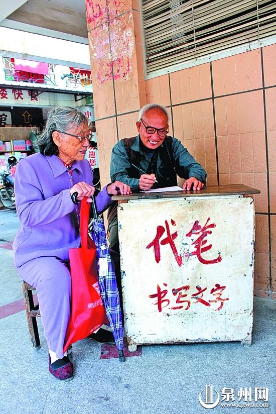 庄先生说,原来锦绣街和塘岸街这边有六七个老人在代书,后来有3个老人陆续去世,有些年纪大了也很少再出来了,“这边就只剩下他还在坚持着。”尤阿伯常常写到天黑,庄先生担心老人回家不方便,有时还会主动送他回去。“代书人越来越少了,但他们是我小时候的记忆啊!”
