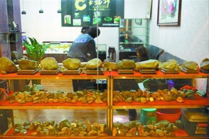 同样伴随翡翠的热门,赌石的销售也开始从只针对专业经营者转向面对公众,在互联网上,只要键入“赌石”你可以看到各种价位、各种样式的翡翠原石。在省城沈阳的北市古玩城、沈阳古玩城里都出现了专门经营赌石的商铺。