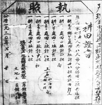 1928年5月5日,中共中央发布关于没收土地和建立苏维埃的第37号通告,明确一切土地于实行共有后,重新分给农民耕种,以县苏维埃政府名义发给土地证,旧时田契、佃约一概废除。同年,琼崖特委制定办法,提出所有自耕农原耕之田地,须向农会领取耕田证。