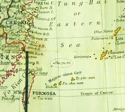 《大清国地理全图》中收录的大清国地图,用笔圈出的为钓鱼岛(Tia Yu Su)