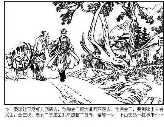 秦琼让王老好先回店去,他和金三顺大道向西走去。他问金三,要到哪里去会买主。金三说,要到二贤庄去找单雄信二员外。秦琼一听,不由想起一桩事来……