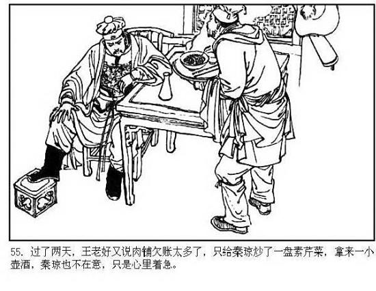 过了两天,王老好又说肉铺欠账太多了,只给秦琼炒了一盘素芹菜,拿来一小壶酒,秦琼也不在意,只是心里着急。