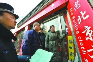 昨天,东城区城管大队与区外办工作人员一起对王府井地区商家不规范的英文标识进行纠正,并把正确的译法告诉商家建议改正。一些商家的牌匾或商品注解经常采取中文直译,往往令外国游客看后一头雾水。本报特约摄影 张传东