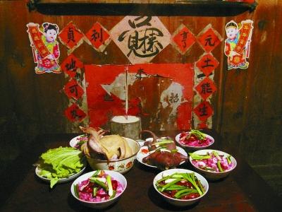 祭祖时,山老鼠摆在餐桌中间。 谢 兰 摄