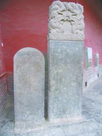 环列应县木塔四周的石碑。 记者 潘恩战 摄