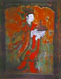 应县木塔里的大辽仁懿皇后萧挞里壁画。 记者 潘恩战 翻拍