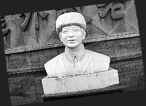 人定湖北巷里颐年园敬老院北门外,一尊白色的雷锋半身像安静地矗立着。这尊像有半米多高,雷锋头戴印有五角星的雷锋帽,微笑着注视前方。