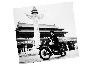 图片①1958年,天安门城楼前,雷锋骑上一辆固定的摩托车拍下这张“艺术照”。