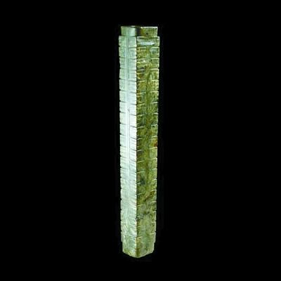 大部分玉琮的角都装饰有脸孔,由眼睛和平行条表示。这种设计是复杂的兽面雕像的简化形式。玉琮的制作过程相当复杂,且要耗费许多时间。因为玉不能像其他石头一样劈开,所以必须要用硬的磨砂进行加工。图二中这件玉琮呈长形,也许是其所处时代内非常重要的一件玉琮。