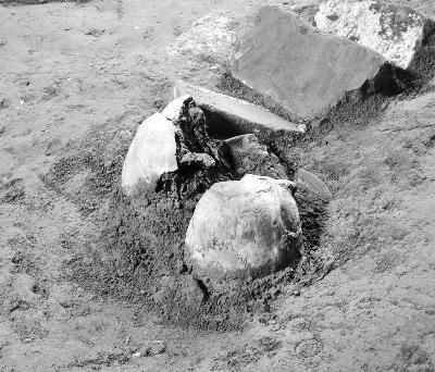 “曹操头骨”出土时的情景