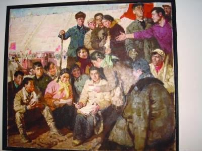 展览以三位画家相识四十年来的故事与作品为主线,叙述他们青年时代的理想、油画实践的轨迹,有启始于70年代三个自学少年的自画像,以及欧洲名作的临摹,一直到2011年各自的写生和创作。尽管三人的作品都很“牛”,但最吸引人的,无疑是陈丹青的作品。这不但因为陈丹青的名气使然,更因为现场所展他的画作,大部分是他30多年前在江浦生活期间留下的,这让念旧的南京人倍感亲切。他的三件重要作品《进军西藏》《给毛主席写信》《泪水洒满丰收田》中,有两件早年就被江苏省美术馆收藏。这次重新展出,大家尤其感兴趣。