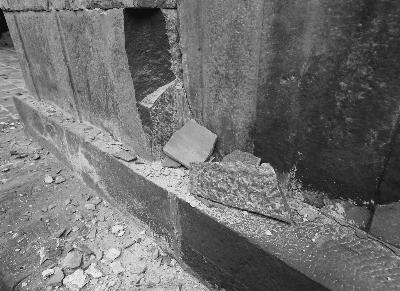 芦山震区文物樊敏阙受损 石碑和阙中部现裂纹