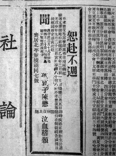 据《北平晨报》1935年3月8日第6版《陈宝琛之丧接三算空前——送者数百尽为知名之士,且有古稀老门生》报道,7日下午为陈“送三”的队伍“……全队出井儿胡同西行,经灵境,绕道甘石桥大街,进堂子胡同,至太仆寺街西口,焚化纸劄车马,而孝子孝孙十余人跪道哭送……”。