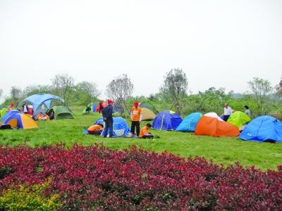 青山绿水间,小草红花旁,昨天是“五一”小长假的第一天,“生态丹徒·发现最美”镇江大型网络宣传活动,在镇江丹徒区十里长山举行。刚刚放假的镇江市民和网友,暂别繁忙的工作,换上轻松的休闲服装,带上自己的帐篷,一头扎进十里长山这一“天然氧吧”,在秀山美水间,释放节日美好心情。记者注意到,参加“帐篷节”的网友要在户外过夜,这种有点挑战性的户外活动,不再仅仅是年轻人的“专利”,不少中老年人也争先恐后的加入其中。图为“帐篷节”一角,其间随处可见中老年人的身影。 汪健 董帅 万凌云 摄