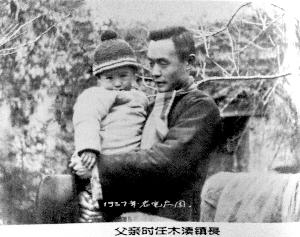 叶奕万的叔叔怀抱小儿,在叶氏老宅花园留影(翻拍)