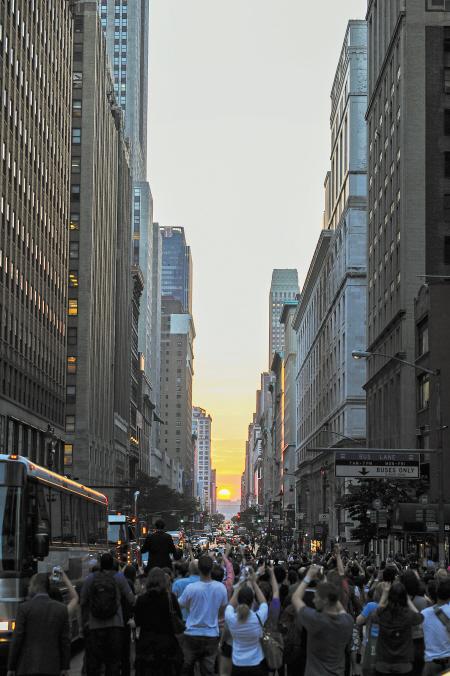 纽约曼哈顿出现“悬日”奇观 每年出现两次