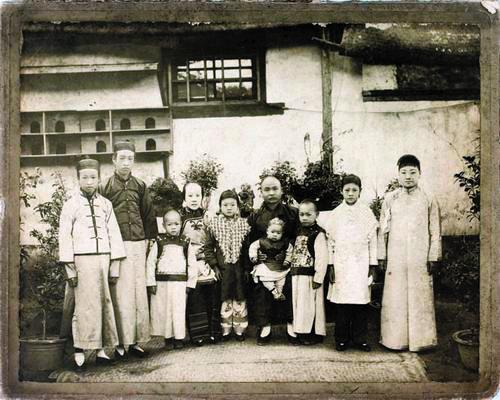 詹天佑与夫人以及八个孩子的合影,约摄于1909年(上海图书馆藏)